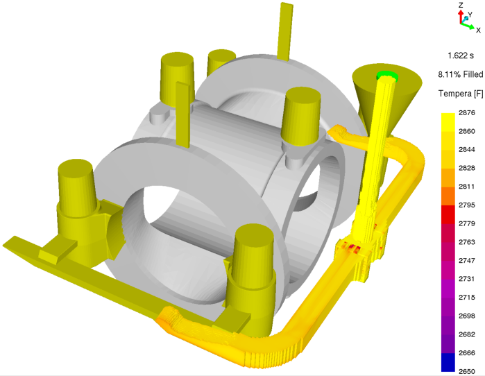 - Works with SOLIDCast™ models to simulate metal movement through gating and mold filling.